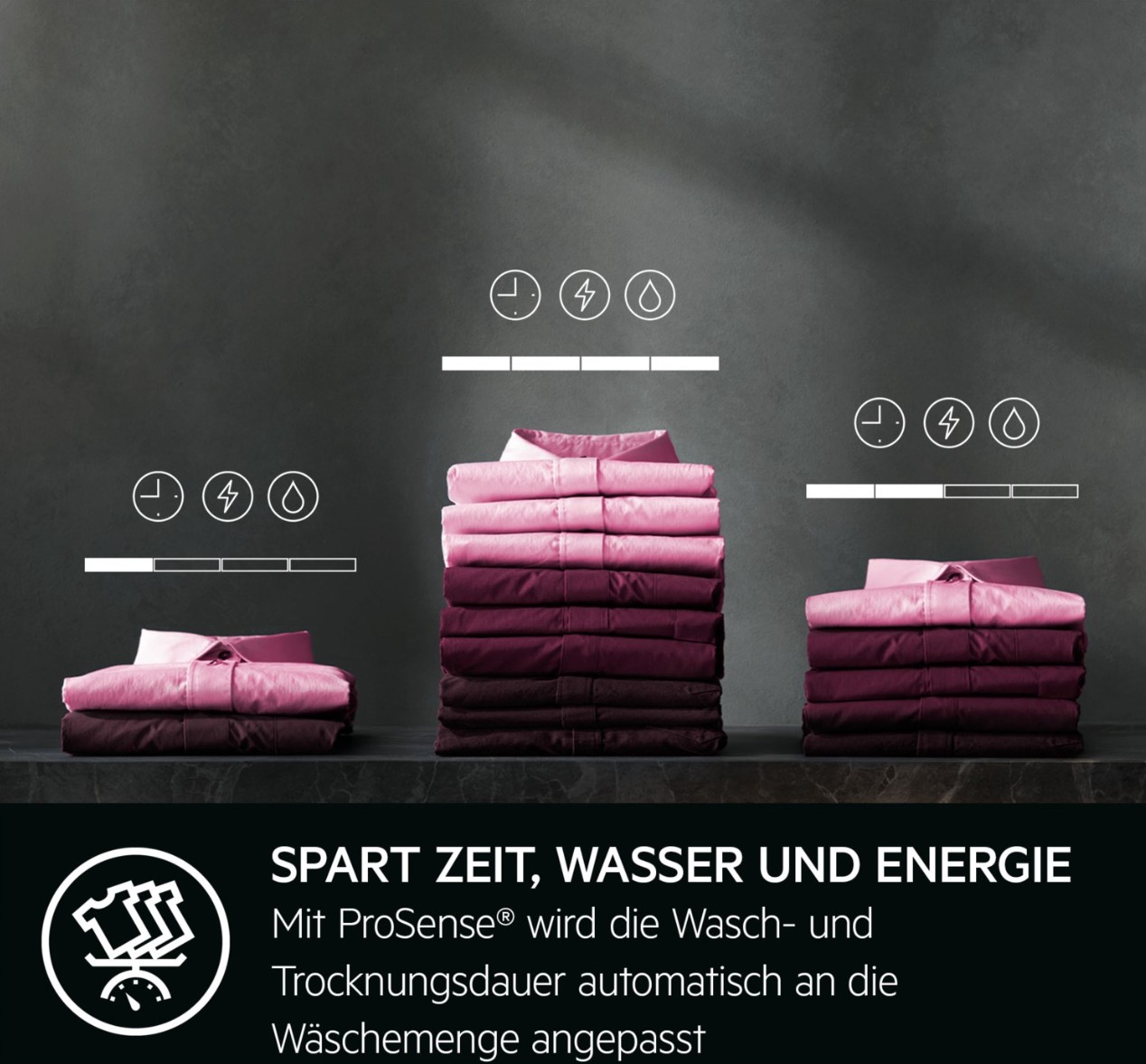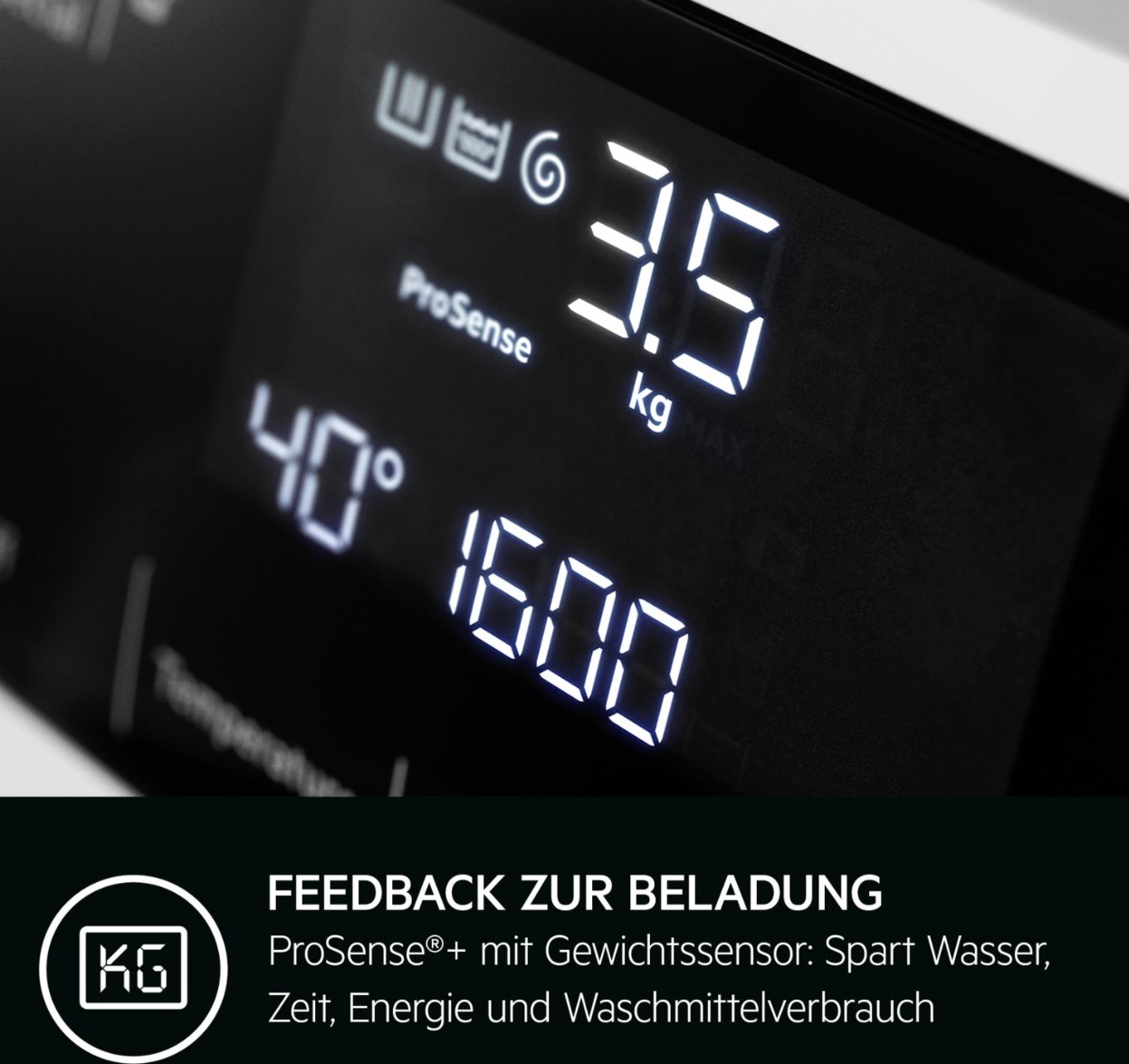 Die Gewichtssensoren von ProSense®+ geben dir während des Befüllens exaktes Feedback zur Unter- bzw. Überladung der Trommel und empfehlen dir die entsprechende Menge an Waschmittel über das Display. Das Gerät passt den Strom-, Wasser- und Zeitverbrauch automatisch an die Wäschemenge an