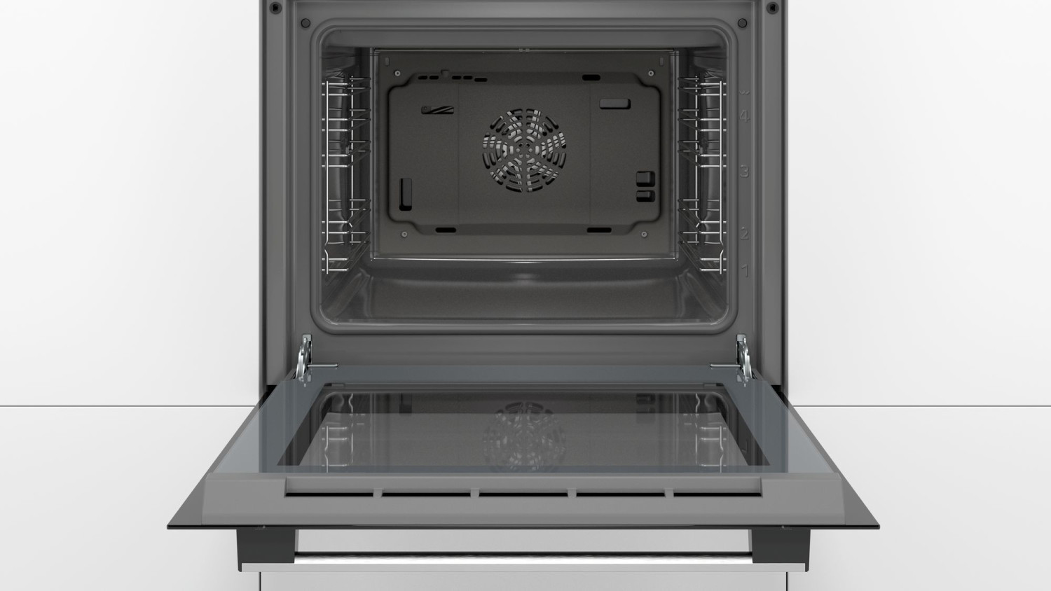 Eine Spezialbeschichtung aus mikrofeinen Keramikpartikeln auf der Rückwand zersetzt Fettspritzer, während Sie backen oder braten – und das ein Geräteleben lang. Das spart Zeit und Energie.